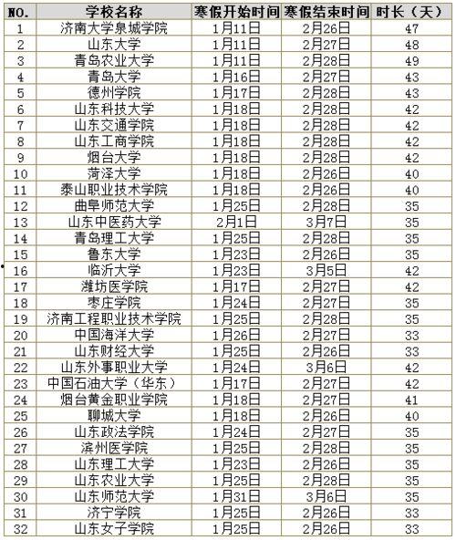 首先,让我们来看看山东地区的寒假时间表。根据山东省教育厅发布的最新消息,2024年的寒假将从1月29日开始,一直持续到2月26日,共计四周。这意味着,同学们将有足够的时间来放松身心,迎接新学期的到来。